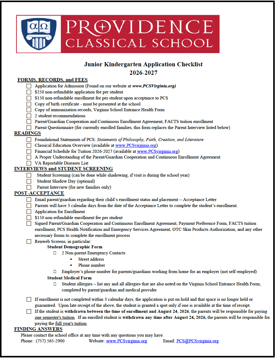 Junior Kindergarten Checklist