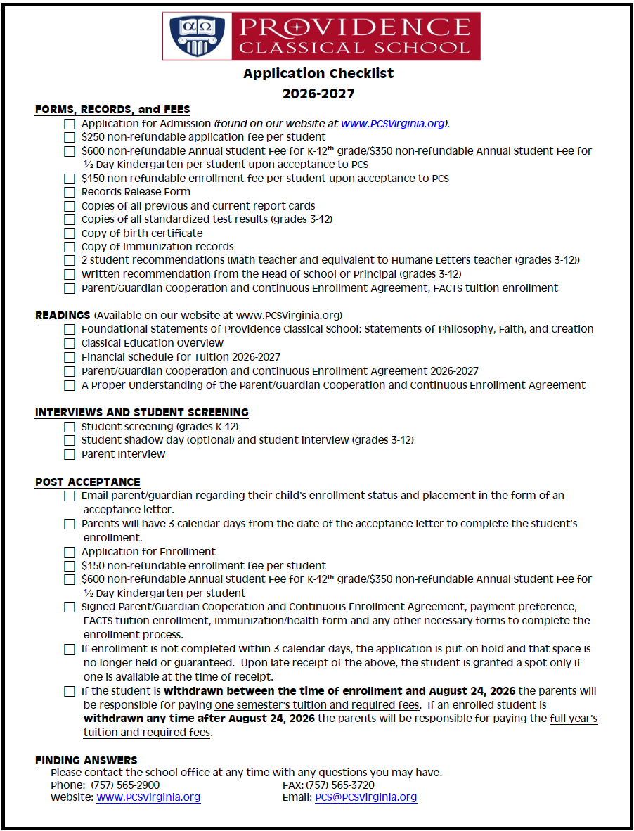 Application Checklist